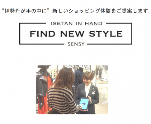 お客様のスマートフォン等や店頭スタイリストがタブレット端末にインストールされたSENSYを使って接客するサービスで、SENSYがお客さまの好みを解析し、より好みに合った提案をしています。2015年9月16日(水)から、伊勢丹新宿店本館、メンズ館にて、ファッション雑誌「SPUR」、「SENSE」と連動した「人工知能接客」を実施。