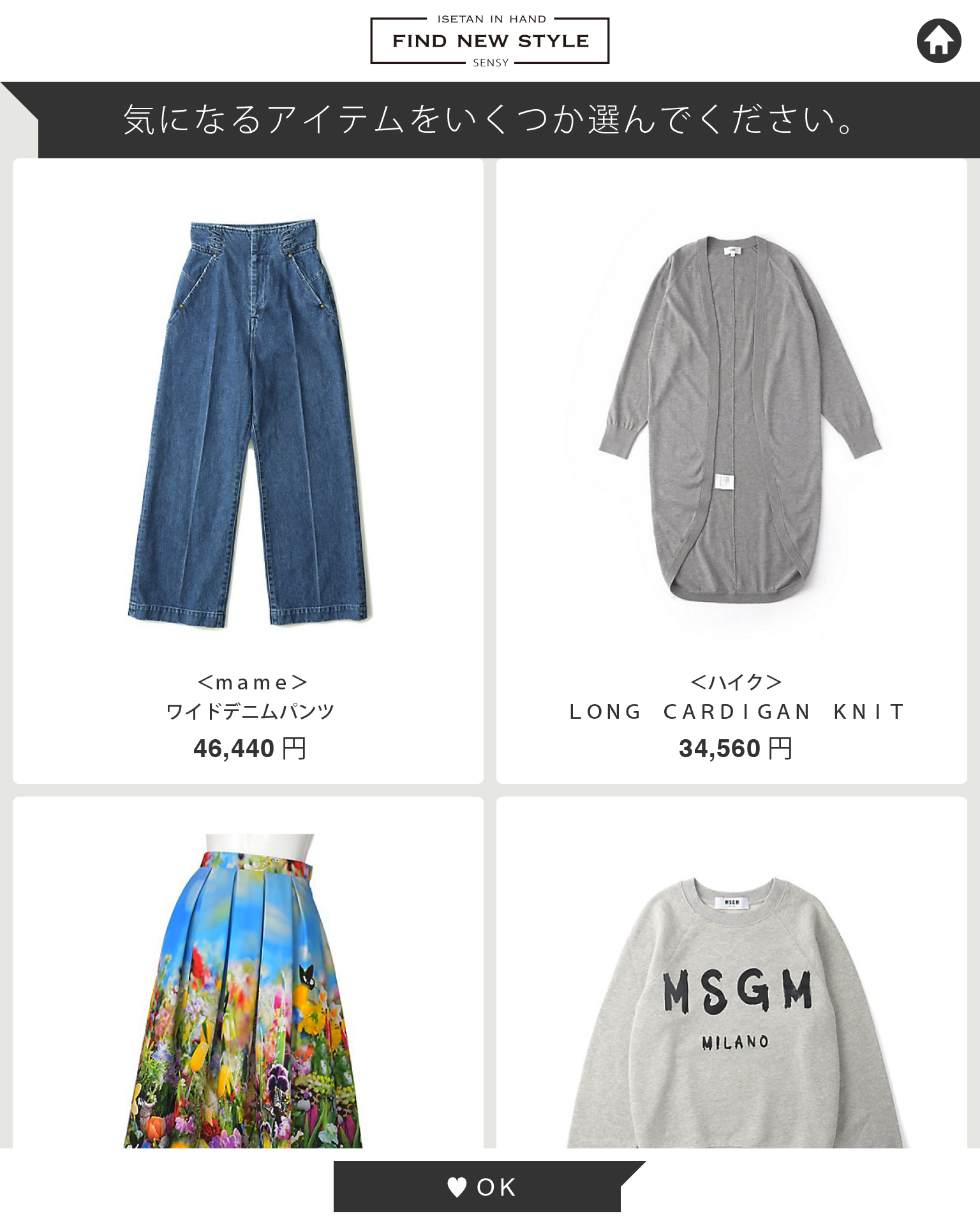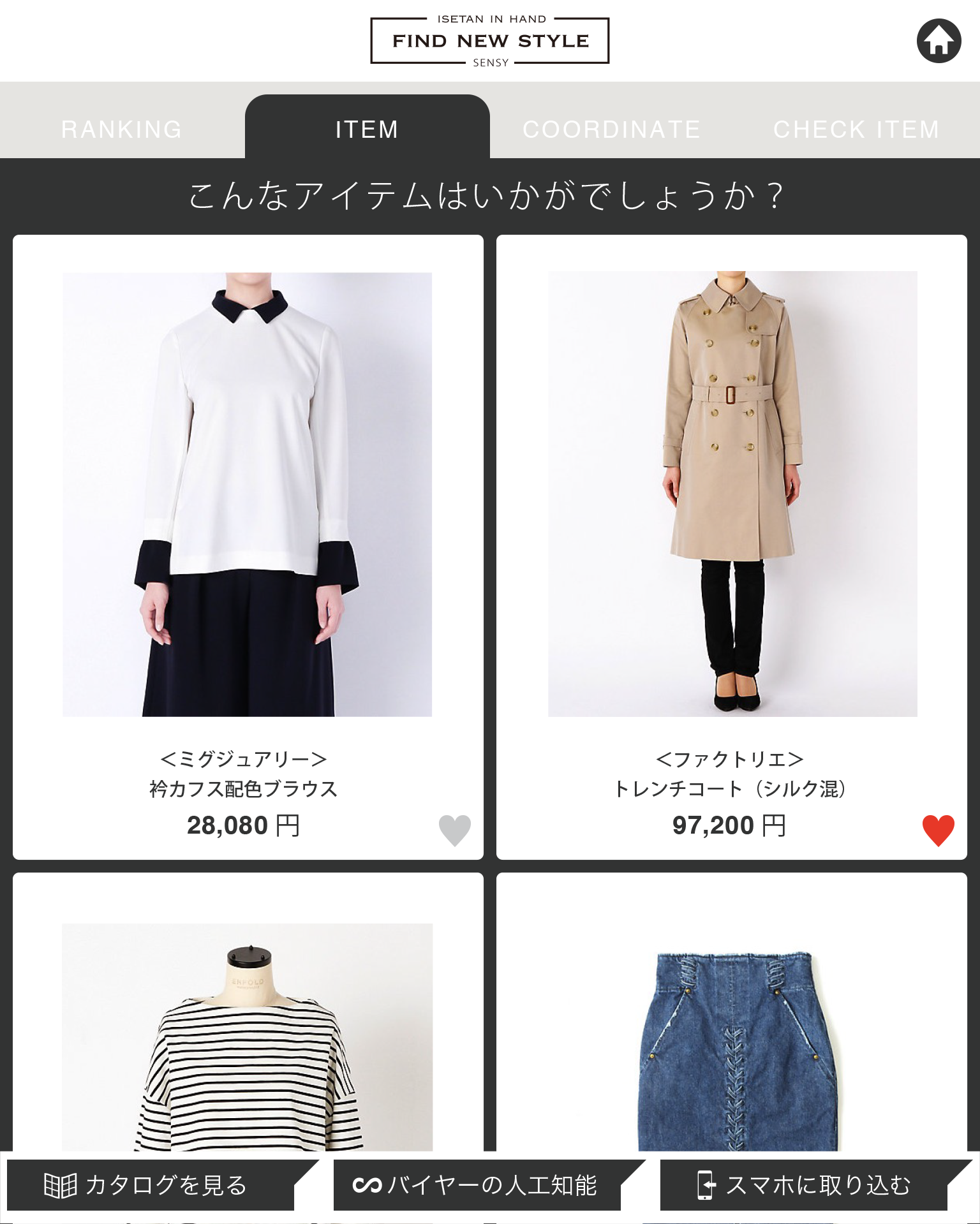 自分の好みを覚えた人工知能が、アイテムの中から、単品アイテムやコーディネートを提案してくれます。