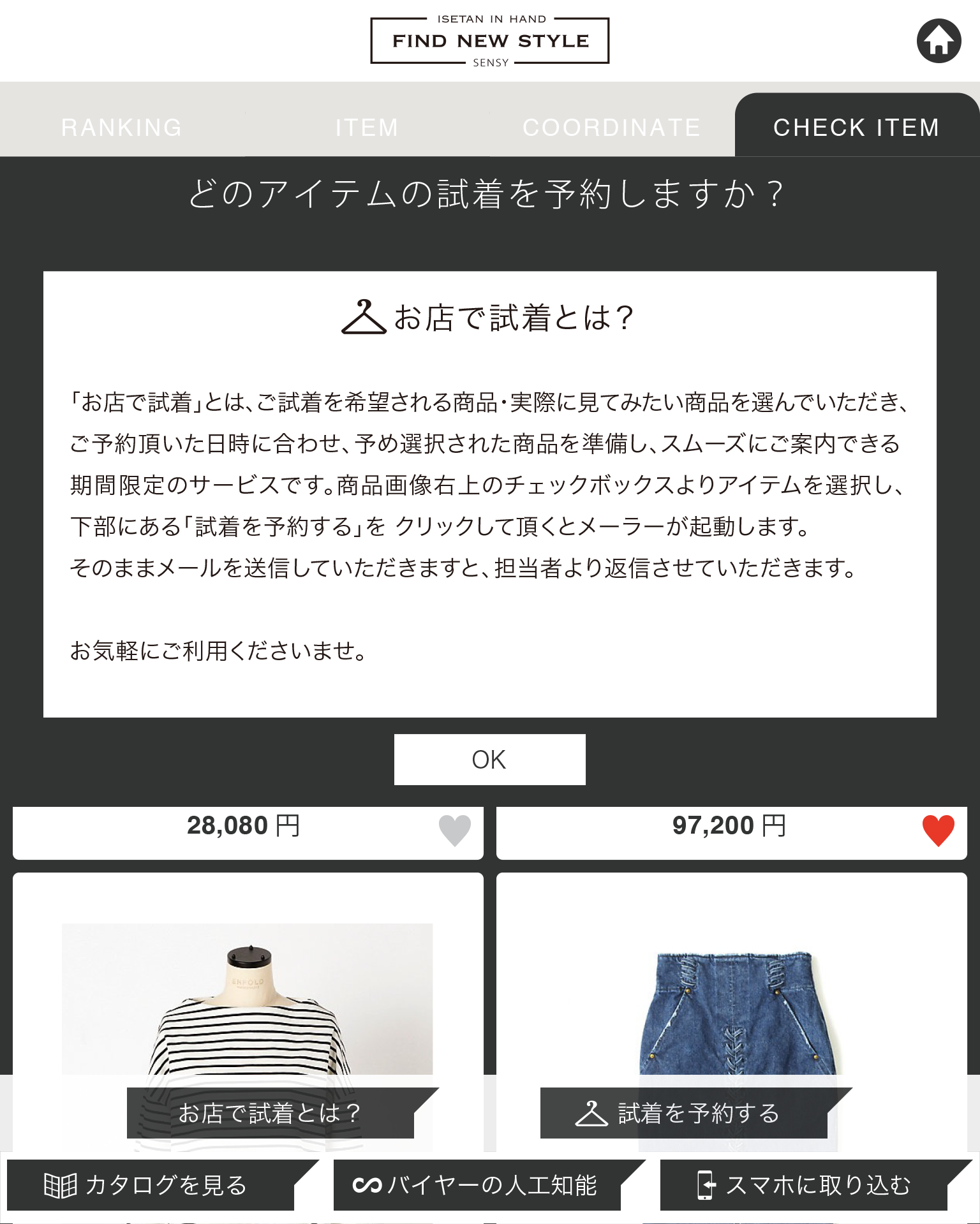 事前にお目当ての商品を決めて予約をすると、 その商品を伊勢丹のスタイリスト(販売員)か?こ?用意して、試着する準備を整えることで、ショッピングの時間を短縮することができます。