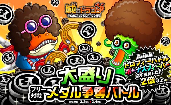 「大盛りフリー対戦メダル争奪バトル」を開催いたします。ドラゴンメダルを獲得して、