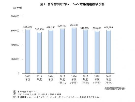 ◆ 2015年度の自治体向けソリューション市場規模は6,297億円の見込、マイナンバー制度対応需要により拡大