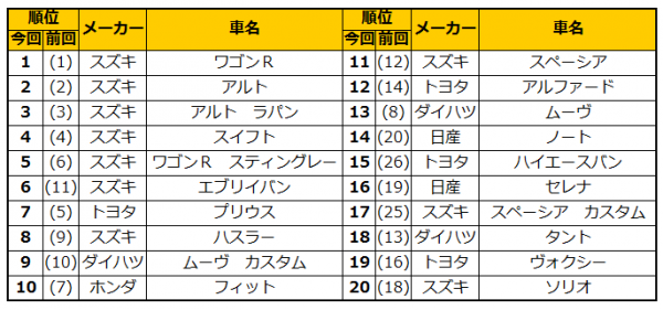 2月のランキングでも「ワゴンR」が無類の強さで首位を独走です。トップ4車種は先月と変わらずの結果となる中、躍進した車種をご紹介致します。まずは、「エブリィバン」。6位という順位は昨年9月の7位を越え最高位を更新です。そして11ランクUPの「ハイエースバン」はなんと2014年2月以来、実に2年ぶりのランクイン。ランキング常連の「スペーシア カスタム」もすぐさまカムバックして17位に位置づけました。