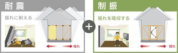 「クラージュ エアリア」は、万一の災害時に備え、耐力面材とアエラストロング工法で地震の揺れそのものに耐える「耐震構造」と、特殊装置が振動エネルギーを吸収することで建物の揺れを小さくし倒壊を防ぐ「制震システム」を標準装備。地震から私たちの暮らしを守る、安全と安心を備えた住宅です。
