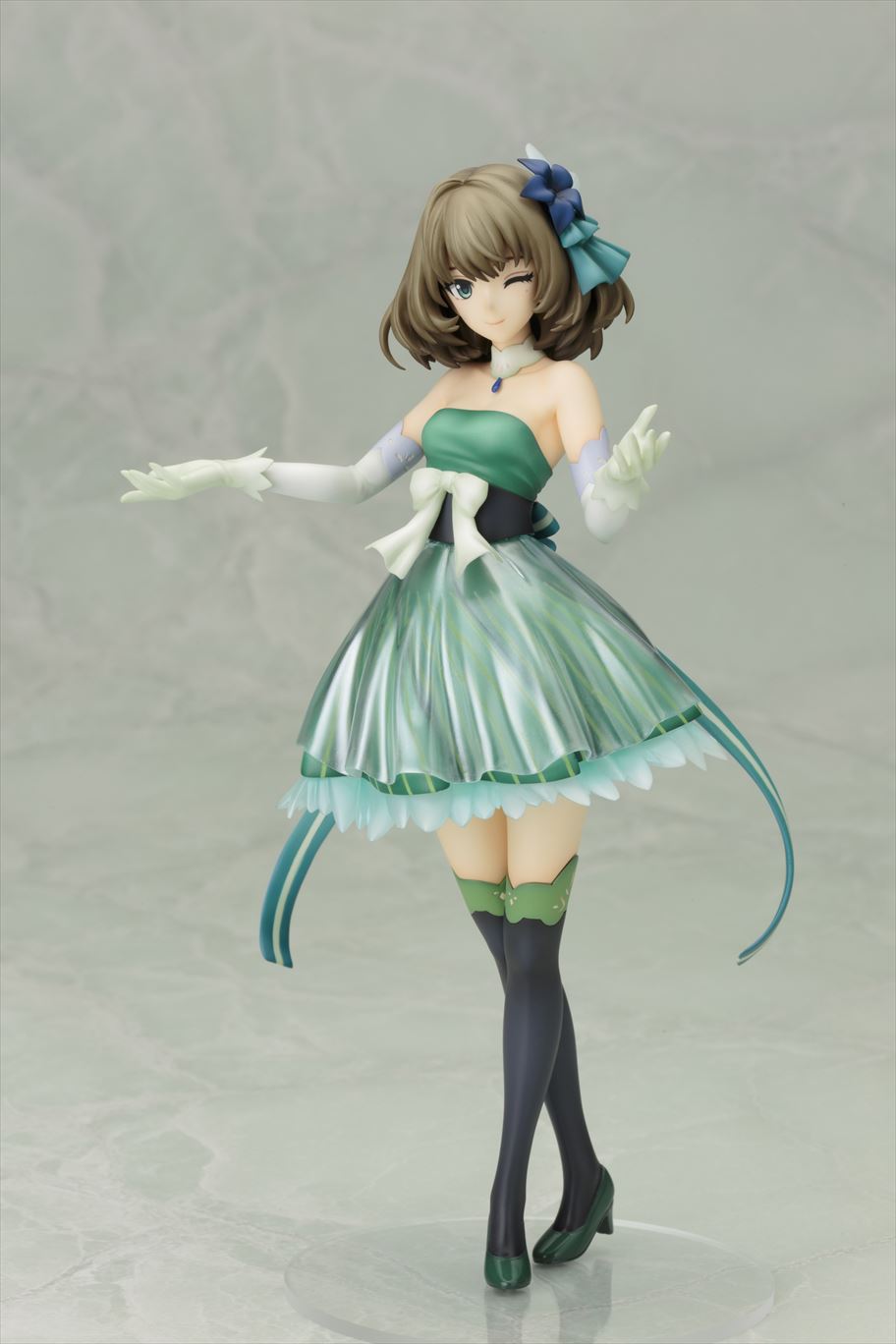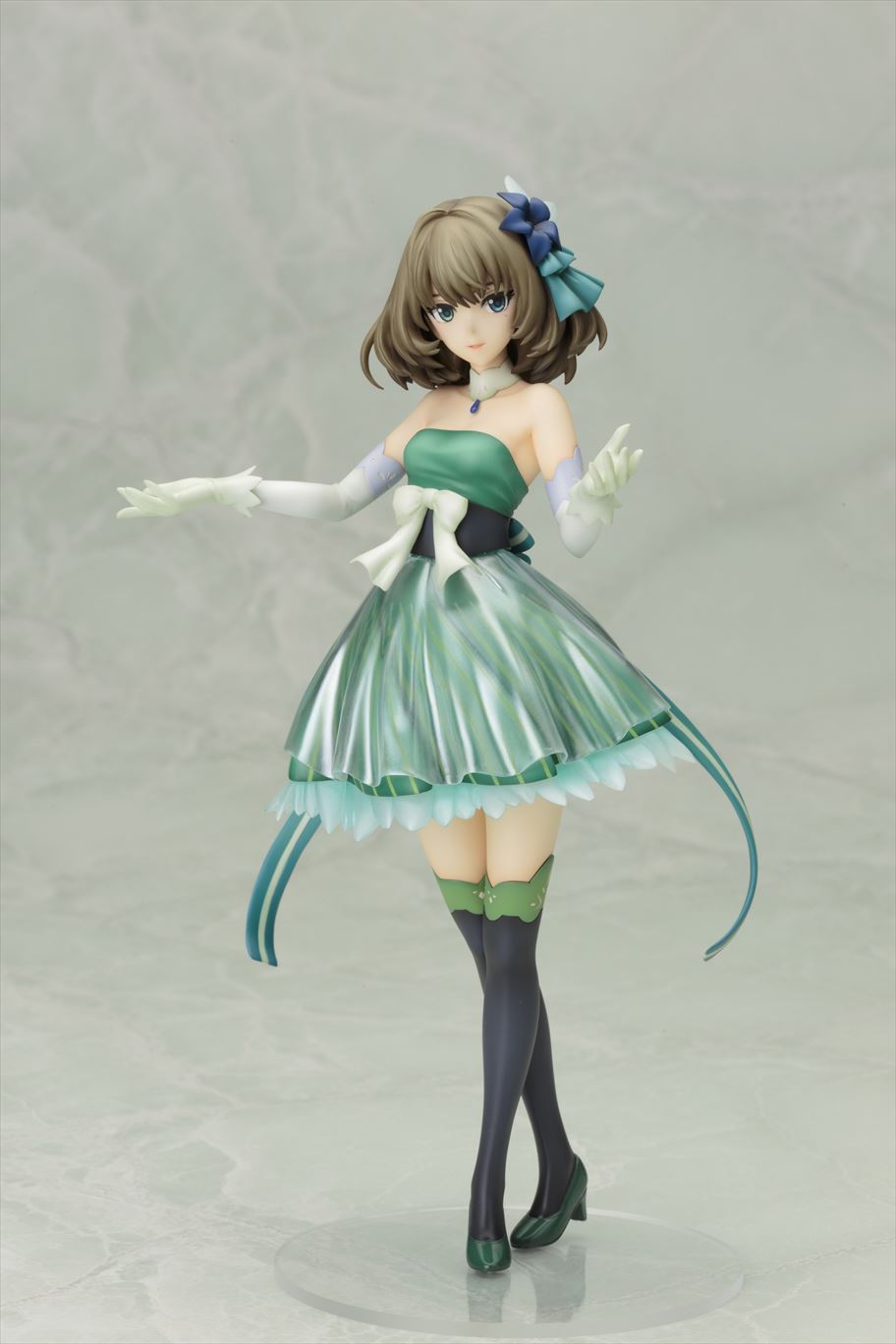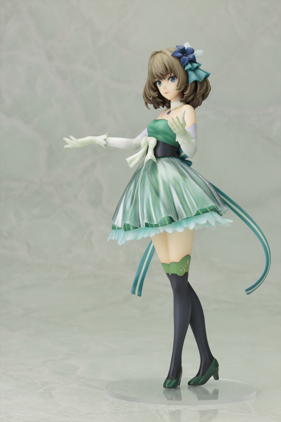 トップアイドルとして登場した「高垣楓」を本編のアイドル衣装で立体化。美しさと可愛さの両方を兼ね備えた彼女の気品さ・繊細さを丁寧に表現しました。また緑を基調とした鮮やかな衣装も、質感にこだわった魅力ある造形となっております。