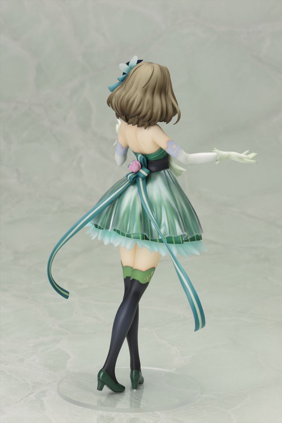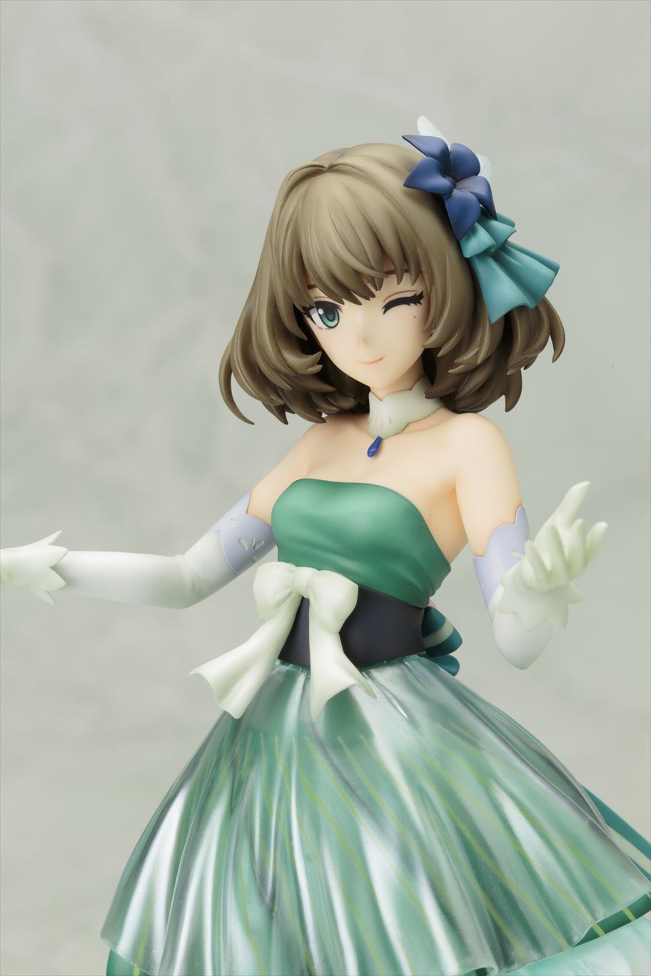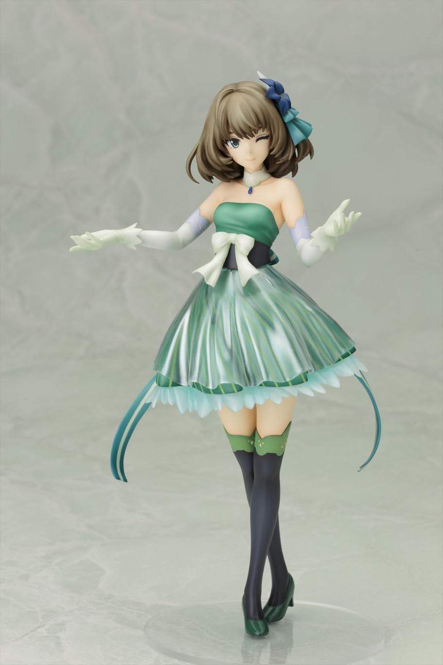 トップアイドルとして登場した「高垣楓」を本編のアイドル衣装で立体化。美しさと可愛さの両方を兼ね備えた彼女の気品さ・繊細さを丁寧に表現しました。また緑を基調とした鮮やかな衣装も、質感にこだわった魅力ある造形となっております。