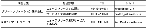 :サービスに関して=企画部開発課 TEL:03-3342-0340 E-MAIL:health_mgt@resol.jp
