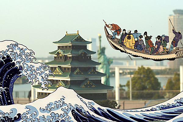 添付画像は北斎の富嶽三十六景、神奈川沖浪裏ですが、ご覧の様に波と船と富士山とが