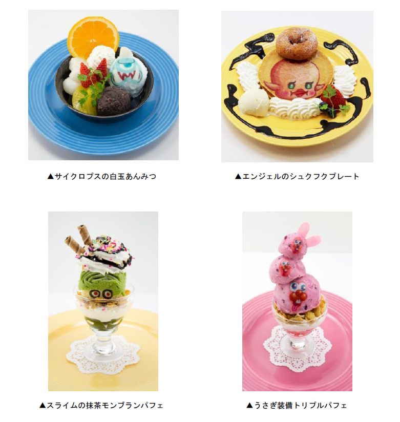世界観やキャラをイメージしたコラボメニュー、カフェでしか手に入らないオリジナルスイーツやグッズを販売。