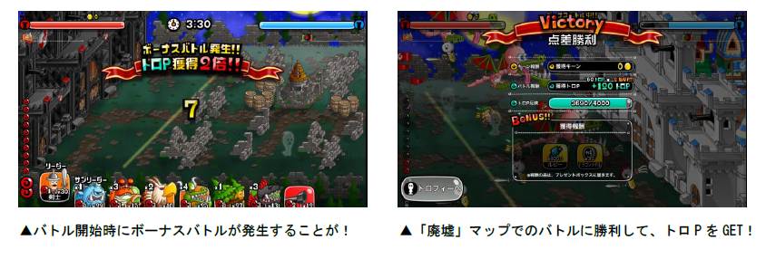 「ボーナスバトル」が発生することがあり、バトルの勝敗に関係なく、獲得トロPが2・3・5・10倍のうち