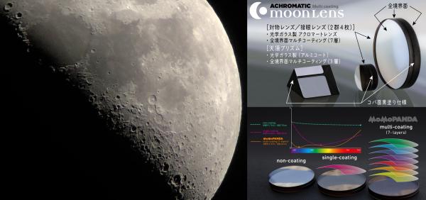 同望遠鏡は、有効口径は38mm、光学倍率約35倍。望遠鏡は一般的に口径が小さいと解像度が落ちるが、スマートフォンとの相性を優先した構造をしているため、デジタルズームと併用して最大倍率約140倍でも高精細で観望できる。