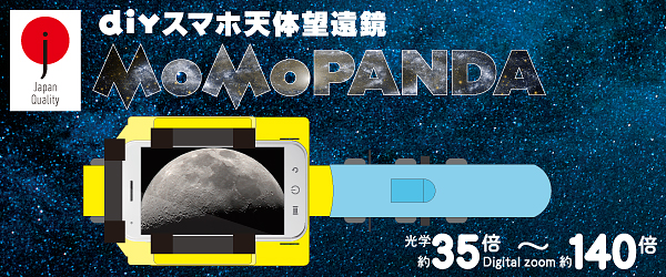 『DIY スマホ天体望遠鏡 MoMoPANDA』の最大の特徴は、「タブレット・スマートフォン対応」と「最高クラスの描写力」、初心者にも扱いやすい「使い勝手のよさ」だ。