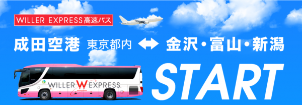 高速バス「WILLER EXPRESS」を統括管理するWILLER EXPRESS JAPAN株式会社(http://travel.willer.co.jp、代表取締役:平山 幸司)は、成田空港の行う「Narita Air & Bus !」の取り組みに参画し、2016年4月4日より主に訪日外国人観光客に向けて、成田空港⇔金沢・富山路線ならびに成田空港⇔新潟路線を新たに開設します。本日よりWILLER TRAVELサイト(http://travel.willer.co.jp/campaign/narita/、以下ウィラートラベルサイト)、3月18日よりウィラートラベル多言語サイトならびに、JAPAN BUS LINESサイト(以下JBLサイト)にて販売を開始します。