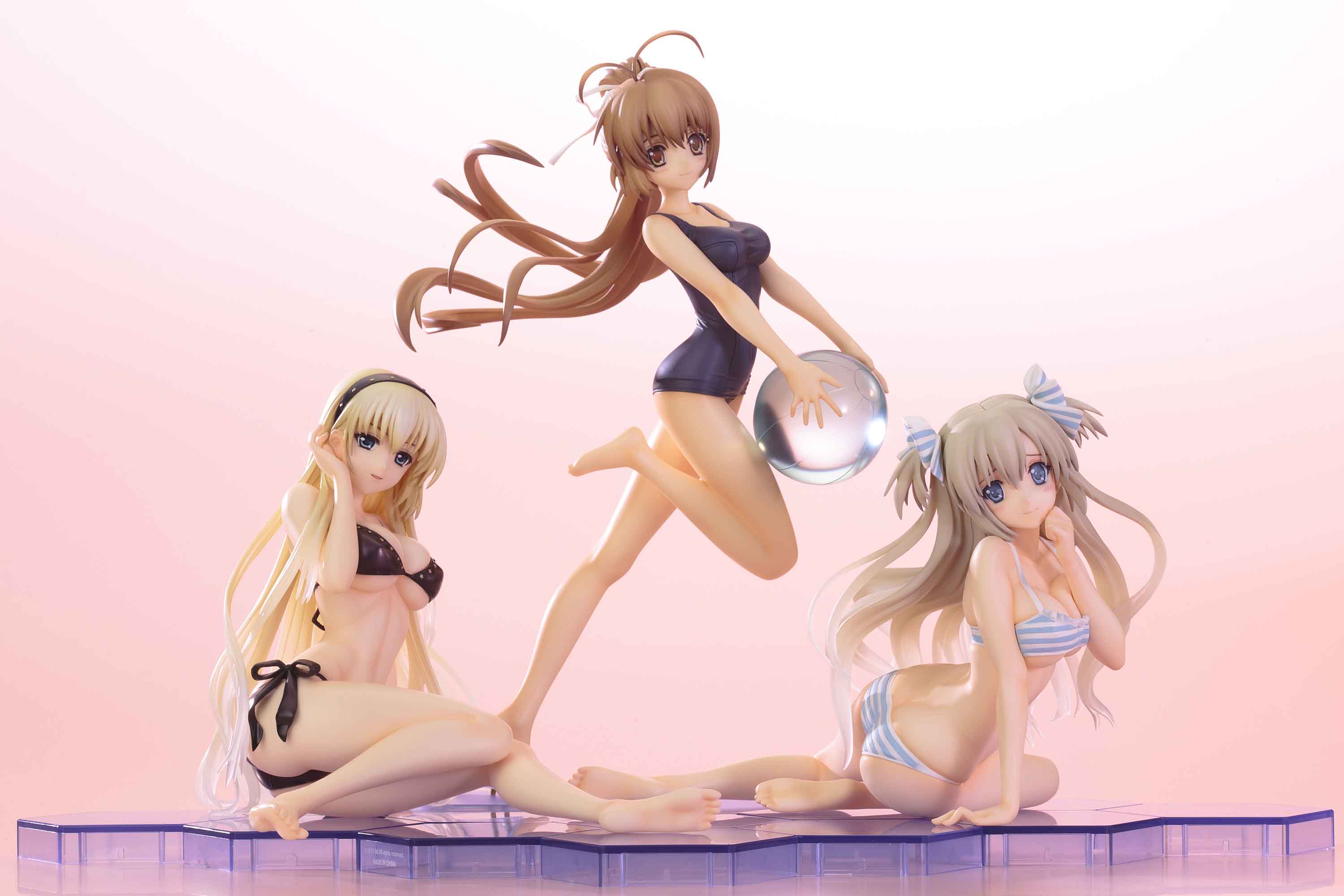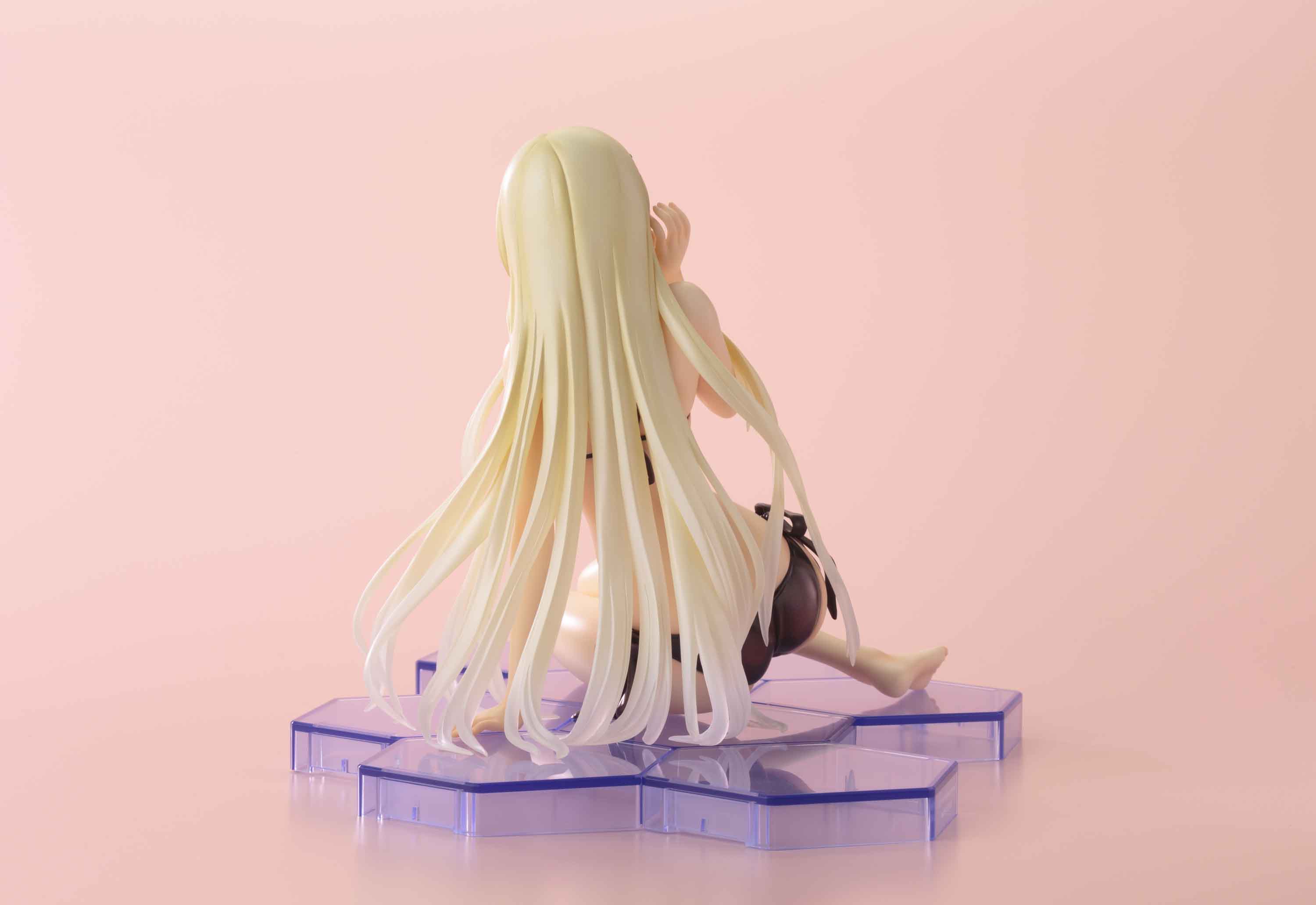 ビキニがパールの輝きが鮮やかな黒に変わり、色白な柔肌を、より一層引き立てます。毛先まで繊細な造形の髪はパール塗装で華やかに仕上げました。キャラクターデザインとイラストを担当するCARNELIAN氏が描く、繊細かつ美しいライン、華やかな顔立ちも丁寧に再現され、隊長として辣腕を振るう碧眼の女傑が、一時の休息にて柔らかく微笑む表情が非常に魅力的です。同作品から「カティア」「リィズ」もフィギュア化しており、ベースは3人のフィギュアを並べてお楽しみ頂ける形になっております。