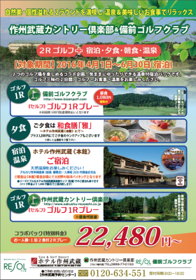 多世代交流型コミュニティを幹としてゴルフ、ホテル、ライフサポート、リゾートライフを枝とするツリー型事業を展開しているリゾートソリューション・グループ(略称・リソルグループ、東京都新宿区)が運営する「備前ゴルフクラブ」(岡山県和気町)と「スパ&ゴルフリゾート作州武蔵」(岡山県美作市)では、両コースでプレーしてコース敷地内の温泉宿でゆったりできるお得なコラボ企画を4月1日~6月30日まで実施します。
