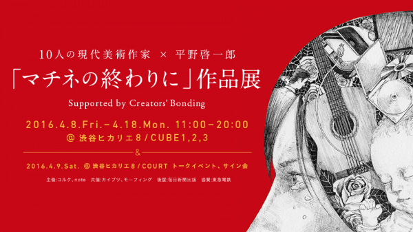 株式会社ピースオブケイク(代表取締役CEO 加藤貞顕)は、渋谷ヒカリエにて、10人の現代美術作家と平野啓一郎氏の小説『マチネの終わりに』の作品展を開催することをお知らせいたします。