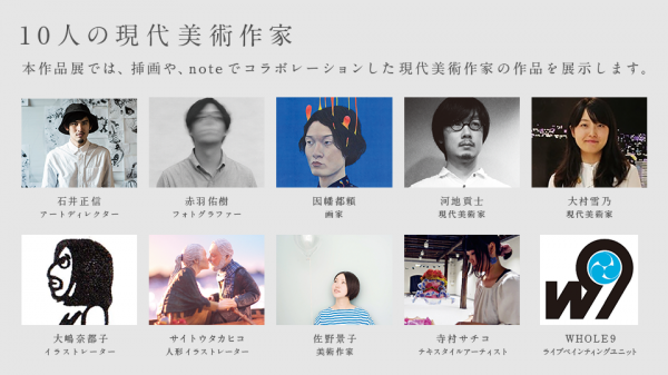 また、note上のクリエイターからの一般応募から選ばれた作品も展示いたします。