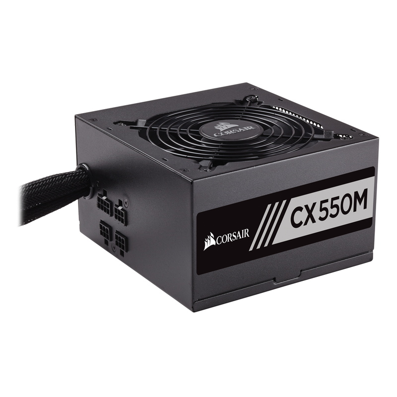CX550Mは、ATX12V v2.4とEPS12V v2.92に準拠、80PLUS BRONZE認証を取得した電源ユニットです。容量550W、1系統45.8Aの出力を発揮します。筐体の奥行は140mmのショートサイズ設計により、Micro ATXやMini ITXなどのコンパクトなシステムへの組込をサポート、柔らかく取り回しがしやすいフラットセミモジュラーケーブル、自動回転数制御に対応した120mm静音ファン搭載、優れた保護回路設計と各種安全認証取得することで長期5年保証を実現します。