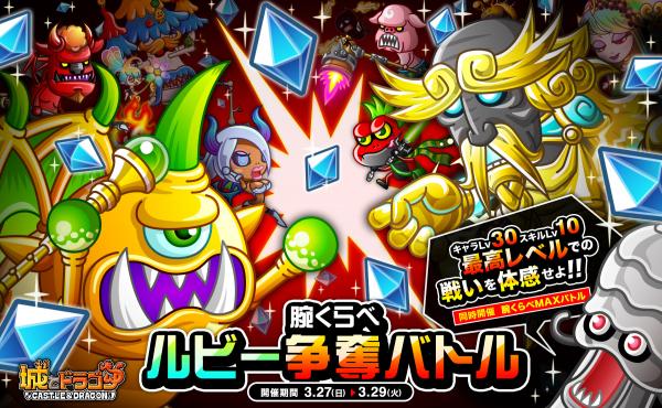 3月27日(日)より、腕くらべモードONの状態でフリー対戦に勝利すると、最大100ルビーもらえる