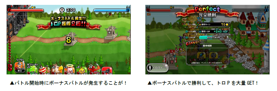 することがあります。「ボーナスバトル」はバトルの勝敗に関係なく、獲得トロPが2・3・5・10倍のうち