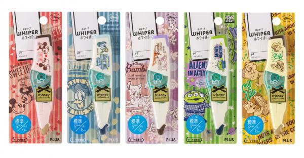 デザインは2製品共通、ミッキー&ミニー、ドナルドダック、バンビ、エイリアン、チップ&デールの5種類。メーカー希望小売価格(税抜)は、修正テープ「ホワイパーPT」が300円(交換テープは定番品と共通で130円)、消しゴム「エアイン」は130 円です。