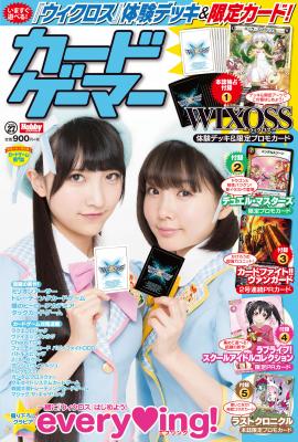 カードゲーム専門誌「カードゲーマーvol.27」は、『WIXOSS-ウィクロス-』体験デッキ&限定プロモカードや、『デュエル・マスターズ』限定プロモカード、『カードファイト!! ヴァンガード』2号連続PRカード、『ラブライブ!スクールアイドルコレクション』限定PRカード、『ラストクロニクル』本誌限定プロモカードなど、豪華付録でお届けします。表紙は声優ユニット「every?ing!」木戸衣吹さん&山崎エリイさん!今号も永久保存必至の内容です!