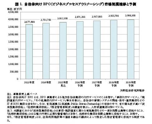 ◆マイナンバーや地方創生に関わるBPO需要が発生し、2019年度の自治体向けBPO市場規模は3兆9,883億円になると予測