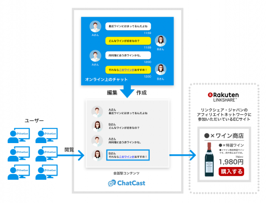 楽天グループのリンクシェア・ジャパン株式会社(本社:東京都世田谷区、代表取締役社長:濱野 斗百礼、以下「リンクシェア・ジャパン」)と株式会社iDEAKITT(本社:東京都渋谷区、代表取締役社長:藤田 遼平、以下「iDEAKITT」)は、リンクシェア・ジャパンのアフィリエイトサービスを利用する広告主向けに、iDEAKITTが提供する会話型コンテンツ作成プラットフォーム「ChatCast(https://chatca.st/)」を活用した成果報酬型のサービスを本日より提供開始します。