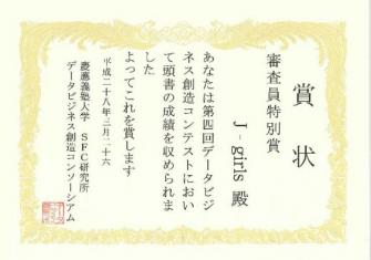 『第4回 データビジネス創造コンテスト』の実質3位である「審査員特別賞」に、