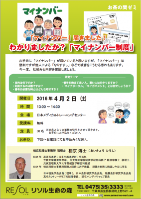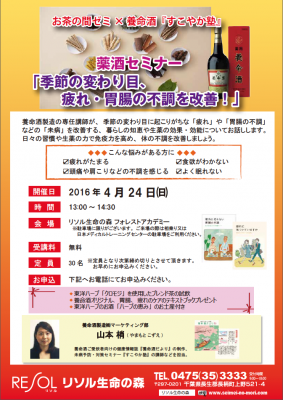 <リソル生命の森「お茶の間ゼミ」2016年4月の各種講座予定>