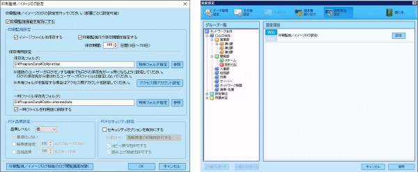 ● SKYSEA Client Viewの組織グループを利用することで、部門ごとに印刷イメージログ取得期間やイメージ保管フォルダを指定することができます。(下図右)