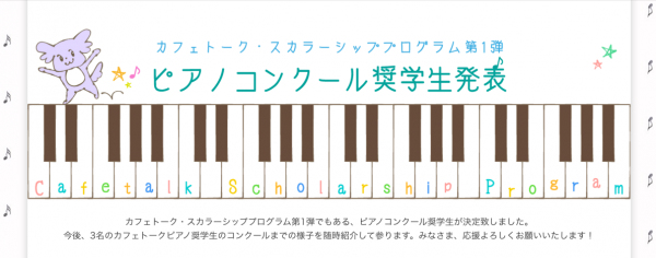 ▼カフェトーク・スカラーシッププログラム第1弾 「ピアノコンクール奨学生」発表