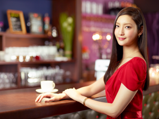 真っ赤なワンピースに身を包み、まるで映画のワンシーンを見ているかのような