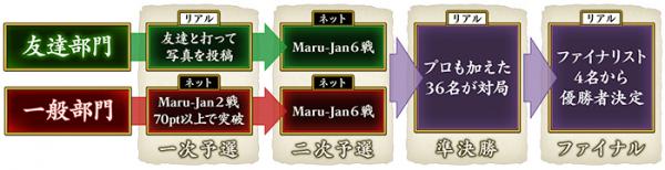 今回から新設された「友達部門」は、友人4人のリアル麻雀で決めた代表者が、そのまま二次予選に進出できるまったく新しい予選方式です。二次予選進出に際しては、4人で対局した写真の投稿が必要です。
