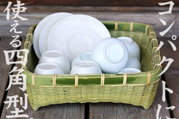毎日使うキッチンはスペースを有効に、勝手良く使いたいもの。台所棚や流しの隅にスッキリ収納できる、真竹四角茶碗籠が新登場しました。丈夫かつ通気性の良い、国産の茶碗籠です。