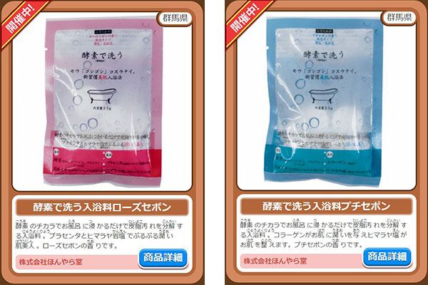 「心からほっとする健康と癒し」をコンセプトに商品を展開する株式会社ほんやら堂(本社:群馬県高崎市 代表取締役:藤永辰美)で人気の『酵素で洗う入浴料』《プチセボン》《ローズセボン》が「まちおこしすごろくゲーム ごちぽん」の商品カードに2016年4月1日(金)から登場!