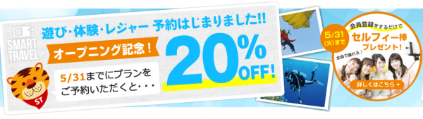 また、今回オープニング記念として、4月12日~5月31日までに予約の着地型旅行商品が20%OFFで購入できるキャンペーン(https://smatra.jp/act/campaign/index.html)を実施します(※一部対象外があります。)。さらにスマートトラベル会員に会員登録をしていただいた中から抽選で30名の方にセルフィー棒をプレゼントします。