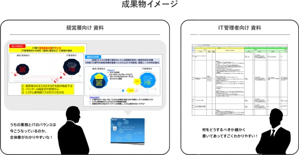 このような経営者の悩みを解決するには、現状のシステム状況を「見える化」した上で「最適化」することが望まれます。通常、コンサルティングファームに依頼すれば、この問題は解決するのですが、実態として、数百万円ものコストがネックとなり、中堅企業においては利用自体が少ないのが現状です。