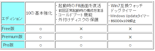 フル機能を提供する有償版です。Windows7からの移行にあたり最も深刻な問題となるブルースクリーンエラーDPC_WATCHDOG_VIOLATION(0x133)の回避機能実装を提供します。
