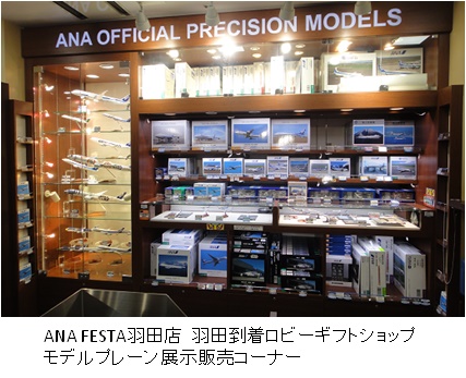 ANAが就航する国内34空港に店舗を構える「ANA FESTA」の中で、唯一モデルプレーンの展示販売コーナーを有する店舗です。全日空商事が企画・製作する約80種類以上のモデルプレーンを販売しています。新製品もいち早く入荷します。2016年3月12日リニューアルオープンしました。店頭販売のみ。新製品の予約・通信販売・お取り置きは致しておりません。