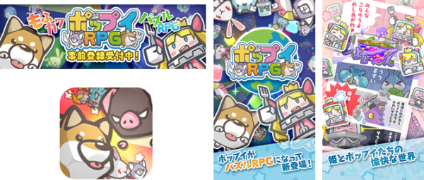 「ポップイRPG」は、パズルRPGゲームとなっており、キャラクターたちを集め、強化育成させながら、ストーリーを進めていく内容です。ダウンロード、プレイは基本無料となっております(一部、アイテム課金あり)。また、iPhone、iPad、Androidの各端末にてご利用いただける予定です。