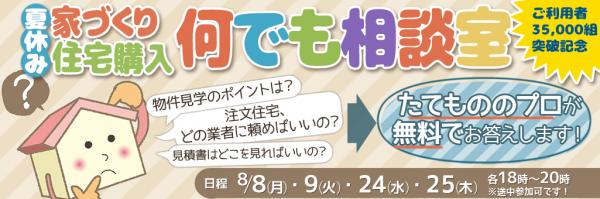 今年5月に国会成立となった改正宅建業法の影響で、急速に認知度が広がりつつあるホームインスペクション(住宅診断)。17年前に事業をスタートさせ、35,000組に達するまで多くのご依頼者様の「住まい」に纏わるお悩みやご不安の解消に取り組んできた当社では、この機会にこれまでの感謝の気持ちを込めて、この度「夏休み 家づくり・住宅購入何でも相談室」と題した無料グループ相談会を実施致します。相談会の対象者は、これから家を建てたい!購入したい!という一般の皆さま。お盆前・お盆明けのそれぞれ2日間ずつ合計4日間、お仕事帰りに寄っていただけるように各日夕方6時から開催しています。開催時間中の途中参加も可能です。みなさまの疑問・質問にお答えしていく相談員は、数々の住宅を点検・調査してきた実績のある当社のホームインスペクター(住宅診断士)。この機会になかなか人に聞けなかった家づくり・住宅購入に関する疑問をどんどんぶつけて、住宅購入に対するお悩みをスッキリさせておきませんか?