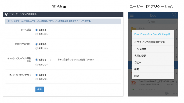 DirectCloud-BOXでは、これまでもスマートデバイスにデータを保存することなく、文書の共有が可能なファイルプレビュー機能を利用する事ができましたが、この度オフライン状態でも安全にファイルを閲覧することができる機能を新たに追加しました。