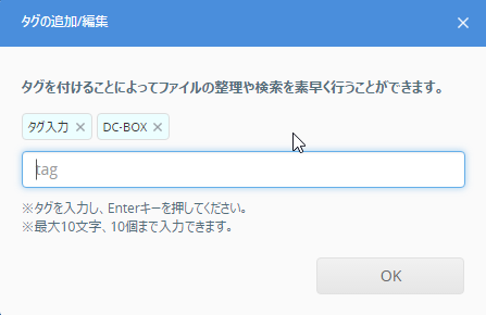 これまでも、DirectCloud-BOXではファイル名での検索機能を提供しておりましたが、タグ機能を追加することで、ファイル名を忘れてしまっても探しているファイルを見つけやすくなりました。