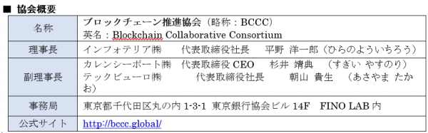 日本サード・パーティ株式会社(本社:東京都品川区、代表者:森豊、略称:JTP)は、平成28年4月25日に設立されたブロックチェーン推進協会(英文名:BlockChain Collaborative Consortium、事務局:東京都千代田区、代表者:平野洋一郎、略称:BCCC)の設立趣旨に賛同し、発起メンバーとして参画致しました。
