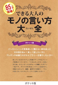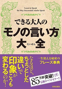 「できる大人のモノの言い方大全」は、知っているだけで印象がアップするフレーズの辞典で、現在でも月に50冊以上売れる書店があるなど、2012年の発売以来、日常やビジネスシーンに役立つ定番商品として長く売れ続け、累計部数も85万部を突破しています。タイミングと状況、話す相手によって言葉を使い分けるのが大人の嗜みですが、それには語彙力を養うのが一番です。この本ではシチュエーションごとに「大人のモノの言い方」が掲載されており、バリエーションに富んだ言い方を身につけることができます。