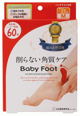 「ベビーフット イージーパック」シリーズは、足の裏に溜まった角質を削ることなく、履くだけで自然に落とすフットケア商品です。