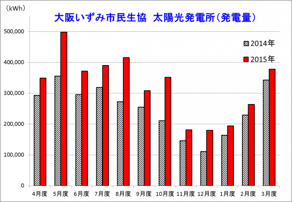 大阪いずみ市民生協の3か所の太陽光発電所 2015年度(2015年4月より2016年3月)の発電量報告
