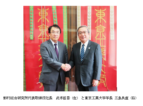 国立大学法人東京工業大学(東京都目黒区、学長:三島良直、以下「東京工業大学」)と株式会社野村総合研究所(東京都千代田区、代表取締役社長:此本臣吾、以下「NRI」)は、4月28日に、「NRI・東工大サイバーセキュリティ教育研究共創プログラム(以下、「本プログラム)」に関する連携協定を締結しました。