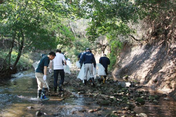 プラス前橋工場を核とする産業複合施設「プラスランド」(敷地面積:約14万坪)を流れる神沢川(一級河川)周辺の素晴らしい環境を守るため毎年、前橋工場スタッフを中心に地元自治体・自治会の皆さまにもご協力をいただき清掃活動を実施しています。