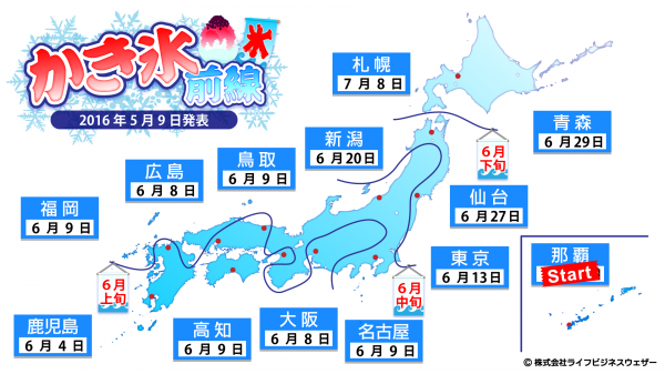 LBWビジネス気象研究所の気象予報士が急な暑さを予想し、かき氷前線の北上が急加速すると予想された場合は、随時発表いたします。